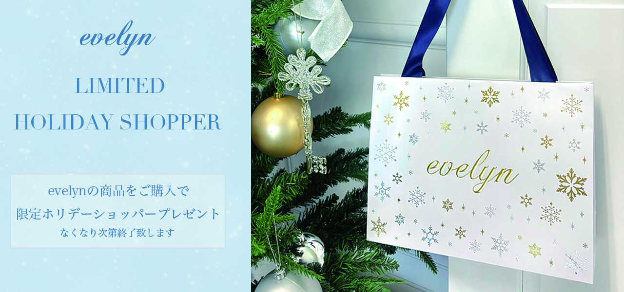 evelynの新作秋冬商品を1点以上ご購入でevelynのクリスマスショッパーをプレゼント、